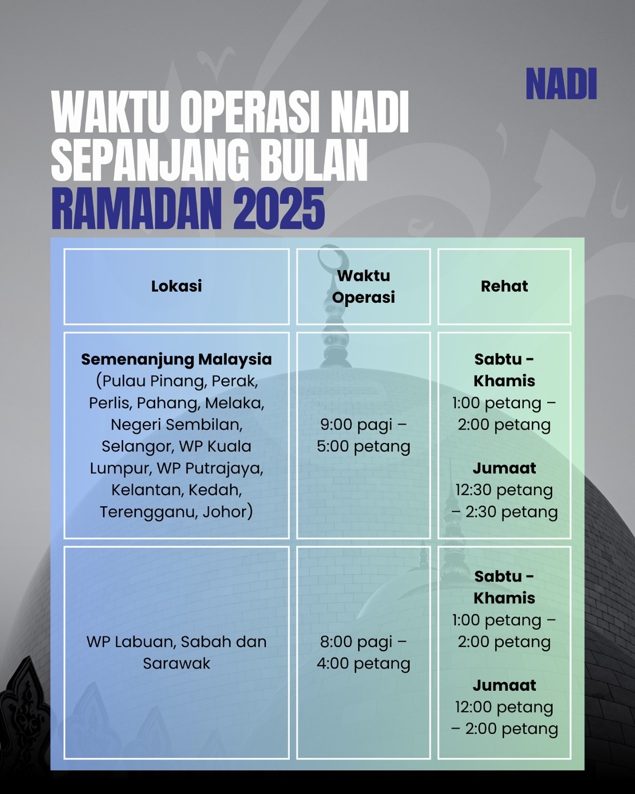 📌 Waktu Operasi NADI Felda Lok Heng Selatan Sepanjang Bulan Ramadan.