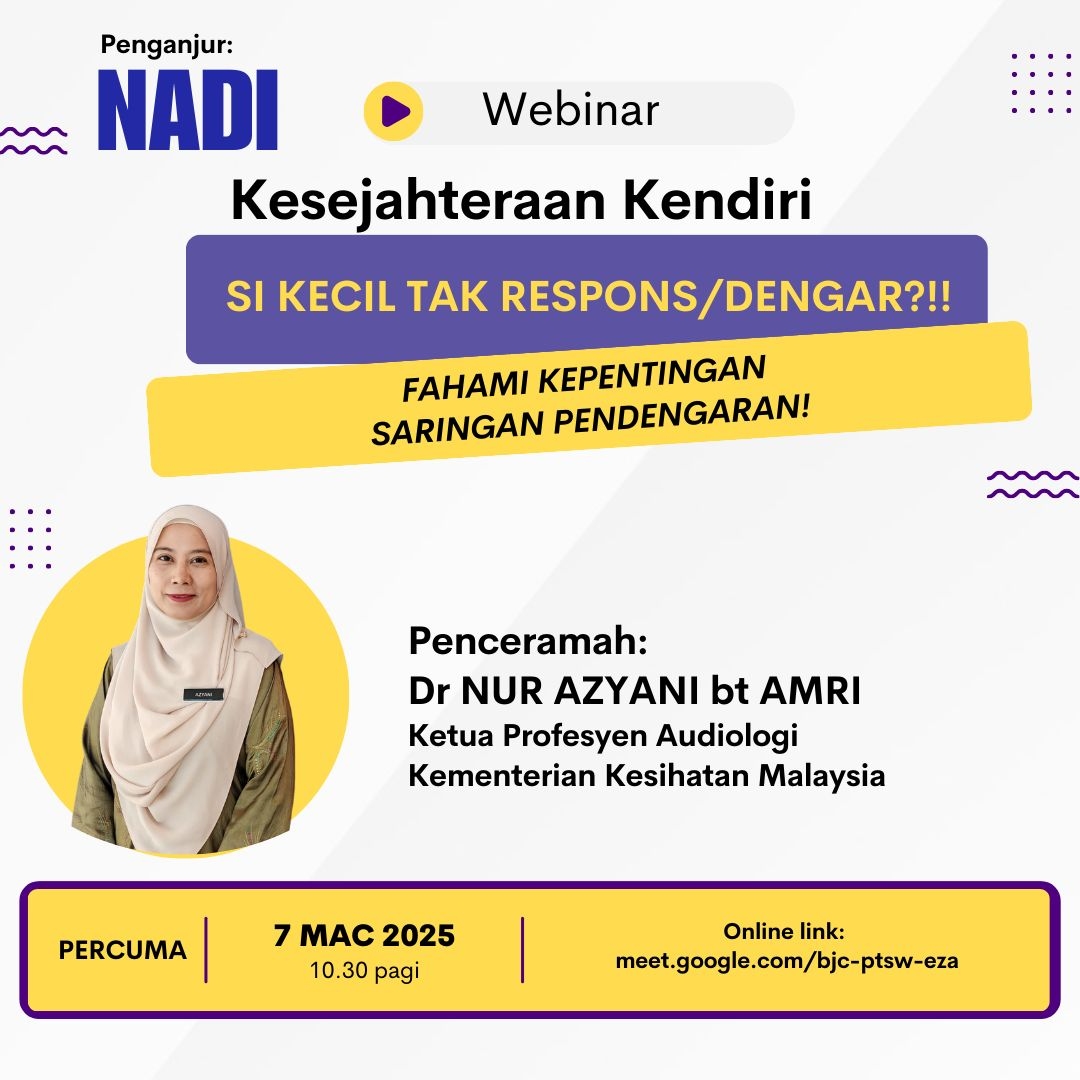 📢 Sertai webinar eksklusif bersama Prof. Goh Bee See, Pakar ENT Pediatrik, Fakulti Perubatan, Hospital Canselor Tuanku Muhriz,