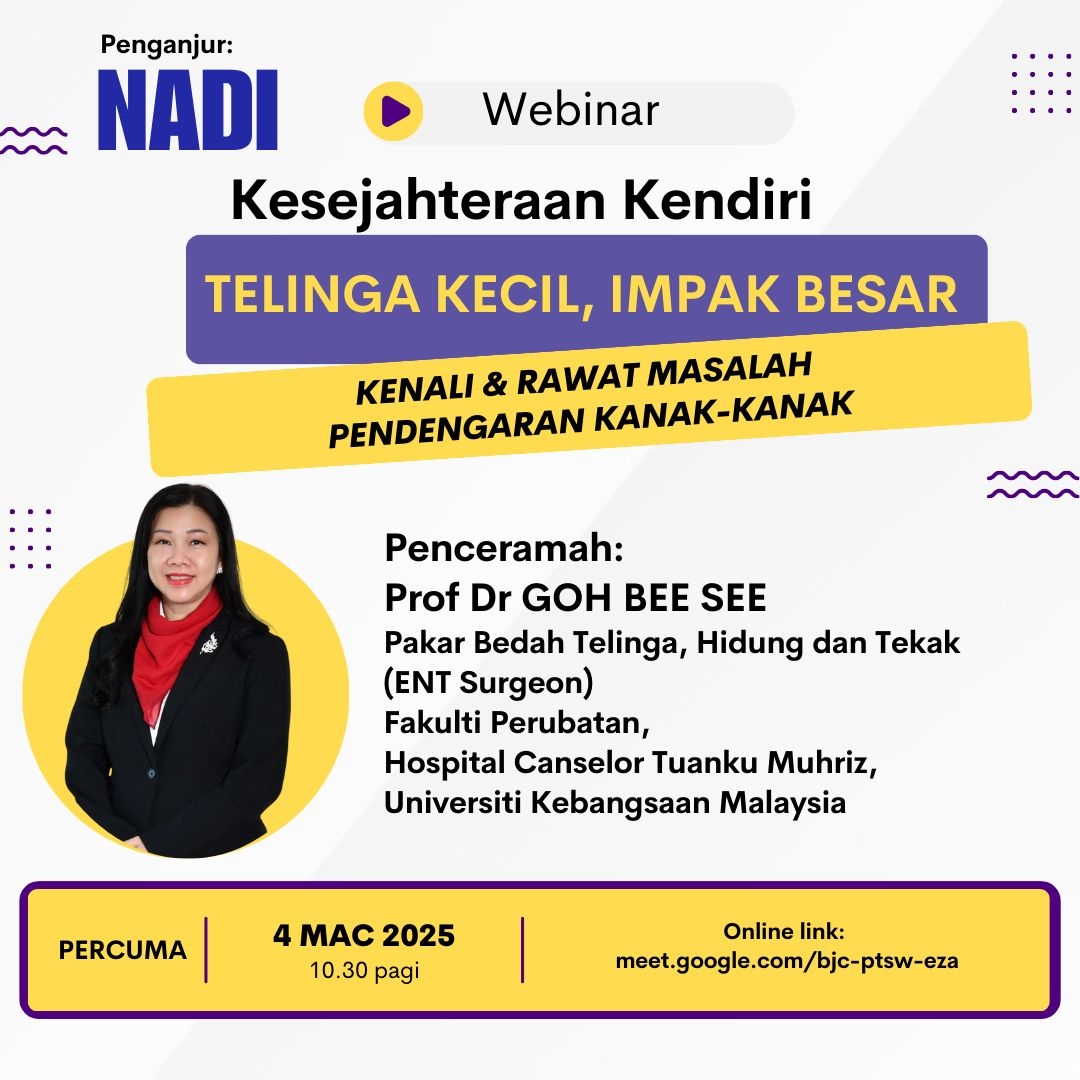 📢 Sertai webinar eksklusif bersama Prof. Goh Bee See, Pakar ENT Pediatrik, Fakulti Perubatan, Hospital Canselor Tuanku Muhriz,