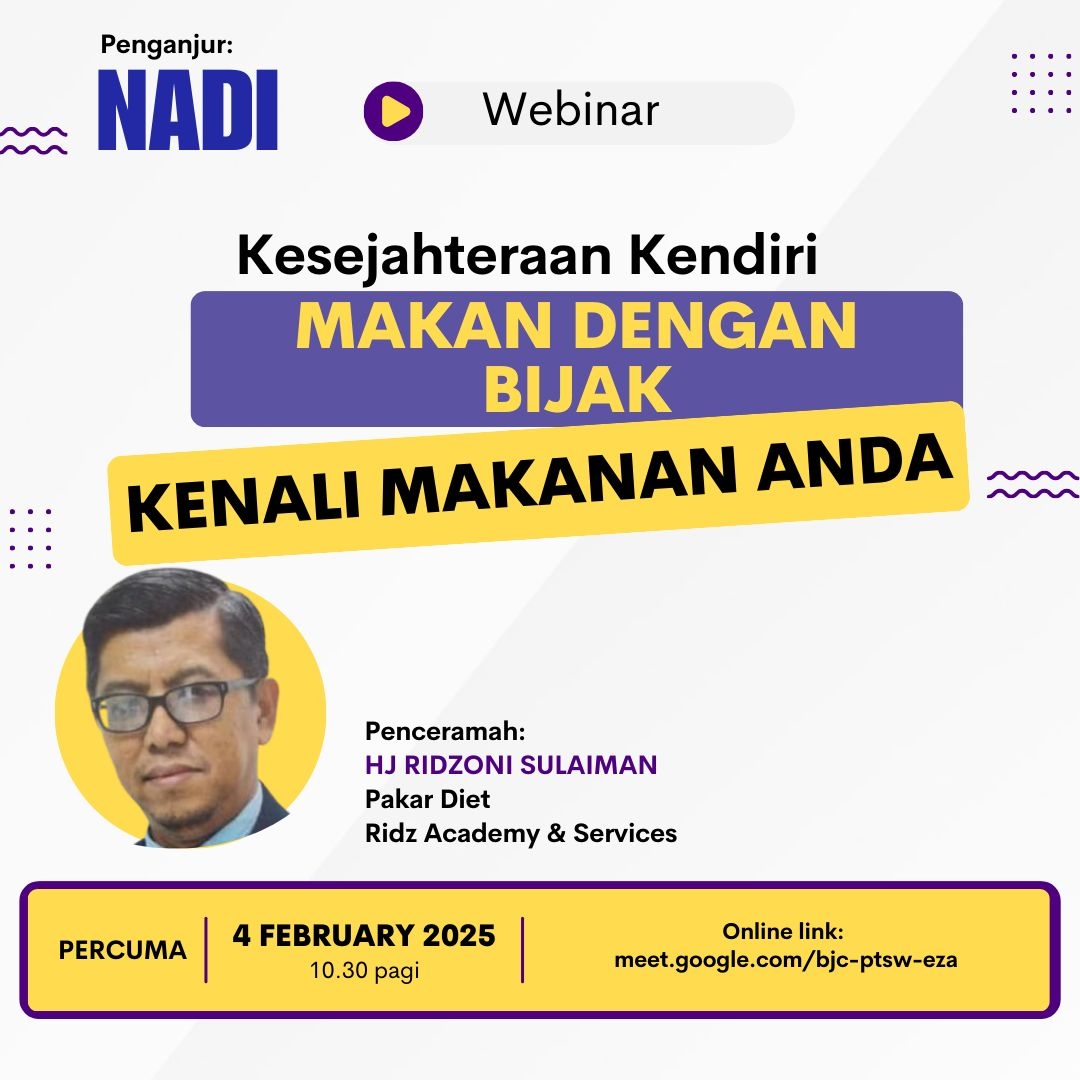 Anda boleh mengikuti webinar ini melalui pautan: meet.google.com/bjc-ptsw-eza atau di laman Facebook rasmi Official NADI Malaysia: https://www.facebook.com/officialnadimalaysia.